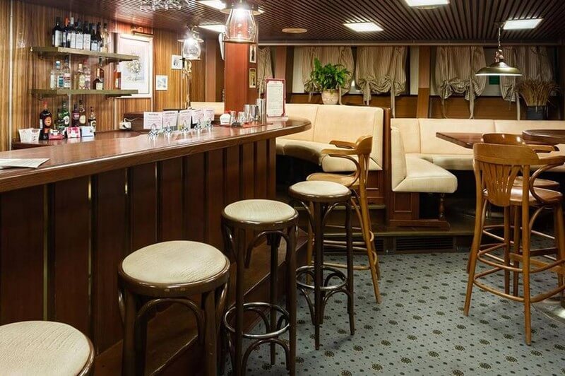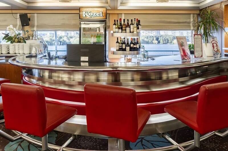 На носу теплохода, на средней палубе, расположен бар «Панорама».