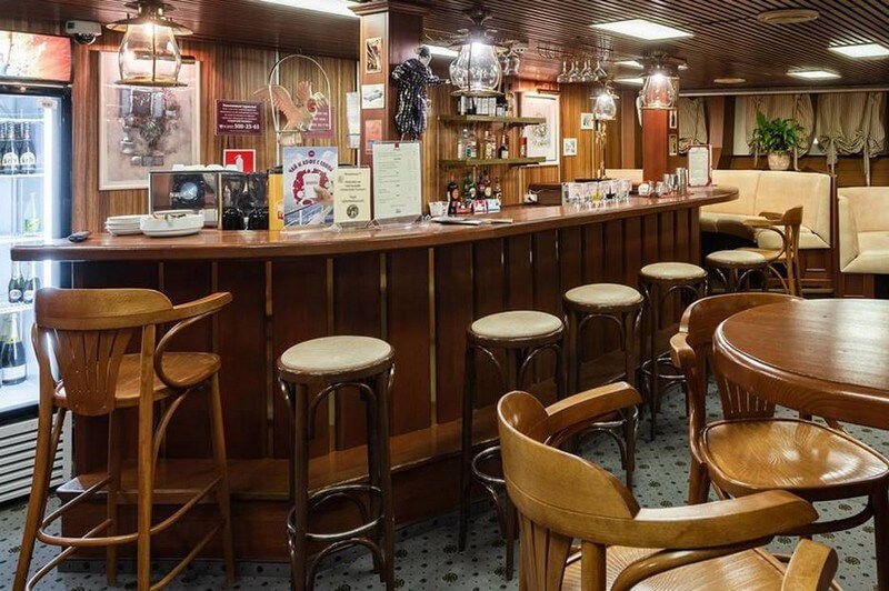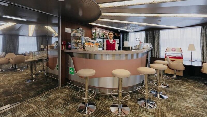 На носу главной палубы «Александра Пушкина» находится бар-кофейня: ещё одно очень уютное место, где приятно посидеть с чашечкой кофе или бокалом пива.